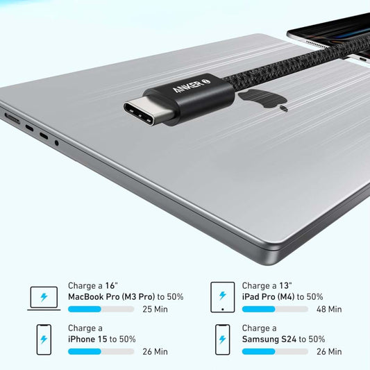 Anker Zolo - Cable tipo C a C, trenzado y repelente a la suciedad, carga rápida 240W 0.9M