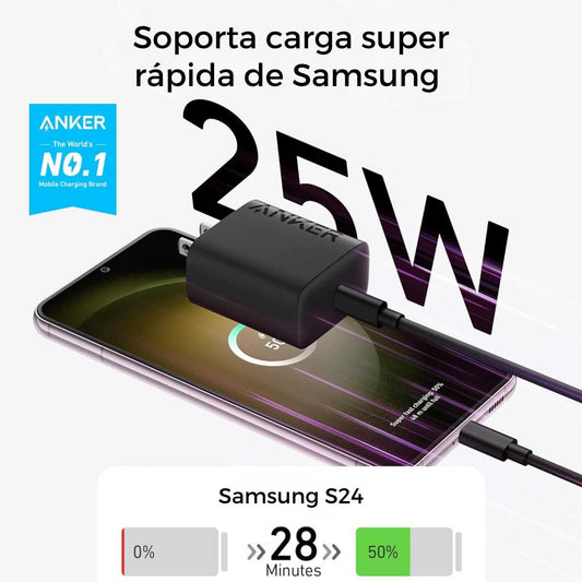 Anker cargador 25W carga súper rápida + Cable tipo C para Samsung Galaxy S25/S24/S23/Series A
