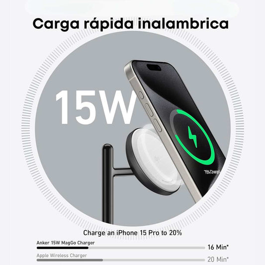 Cargador MagSafe Anker MagGo 15W certificado Qi2 para iPhone 16-12 series, Apple Watch-AirPods