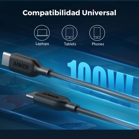 Anker cable tipo C powerline III 100W carga rápida 2.0 para Macbook/Samsung S24 Ultra/Switch