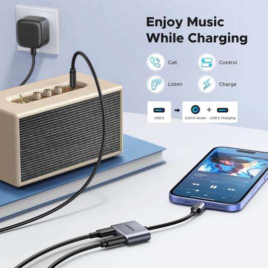 Ugreen USB-C a 3.5mm Adaptador de Audio con Puerto de Carga 2 en 1 PD 60W