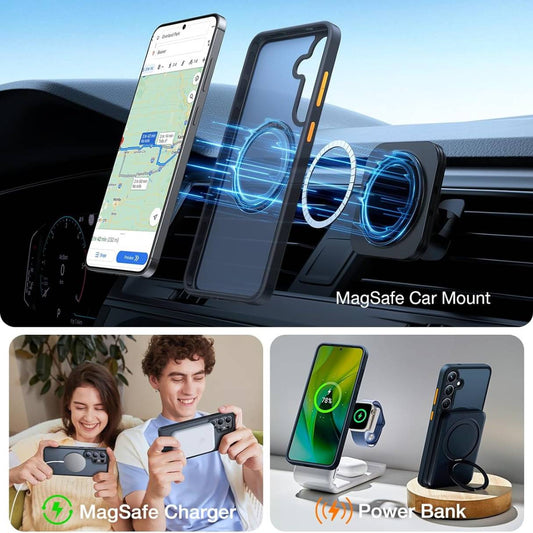 Torras Funda MagSafe para Samsung Galaxy S24 Ultra a prueba de golpes grado militar, delgada, semitransparente, negra