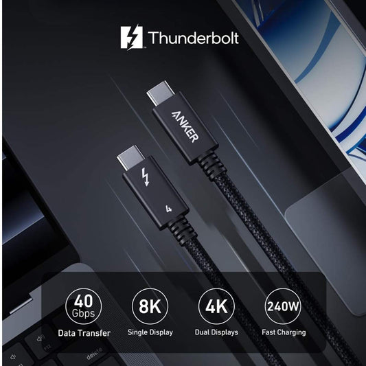 Anker Prime Cable Thunderbolt 4 tipo C 240W, transferencia de datos 40 Gbps, video 8K/4K, para iPhone 15/16 Series, MacBook Air, iPad, Samsung 1M