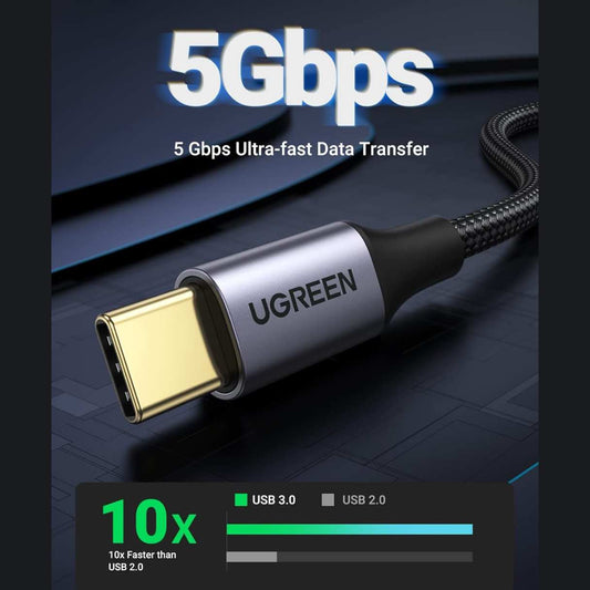 Ugreen Cable tipo C a A 3.0 transferencia de datos de 5 Gbps, trenzado carga rápida para Android Auto/iPhone 16/Galaxy/iPad