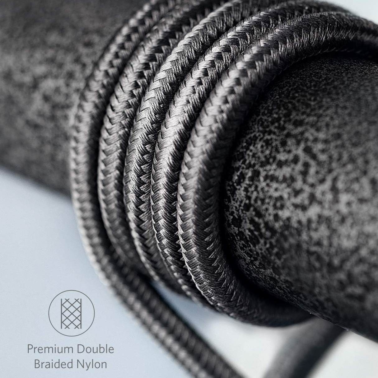 Un exterior de nailon resistente y un núcleo de fibra a prueba de balas se combinan para crear un cable USB C que puede soportar hasta 12000 dobles.