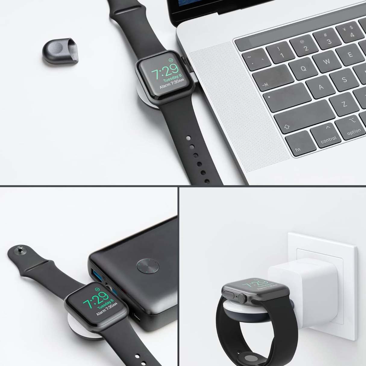 El diseño extremadamente compacto y simplificado ofrece una gran portabilidad para una experiencia de carga inalámbrica y sin enredos del Apple Watch.