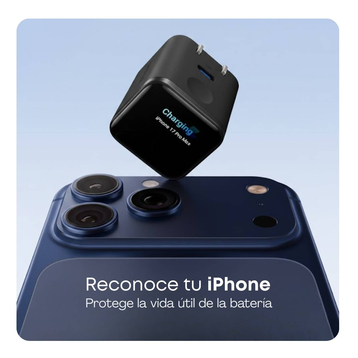 Entrega hasta 45W de carga rápida y regula la potencia según el nivel de batería. Carga el iPhone 17 Pro al 50 % en solo 20 minutos.