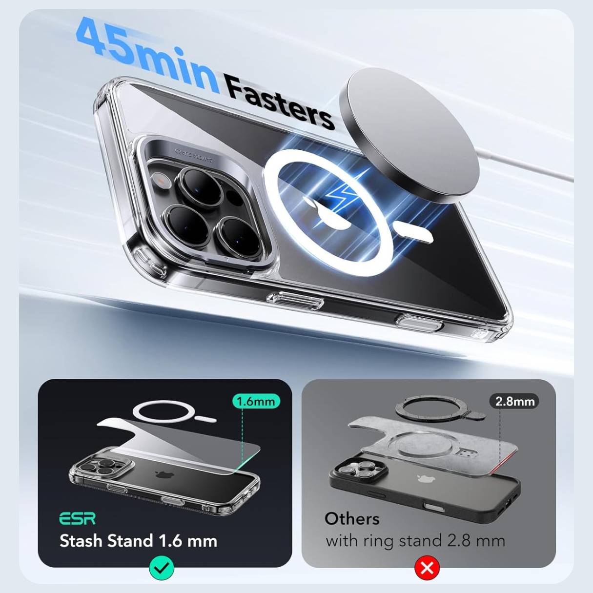Funda ESR para iPhone 16 Pro con MagSafe, protección de grado militar 3X, anti amarilleo, soporte de anillo de cámara, funda transparente