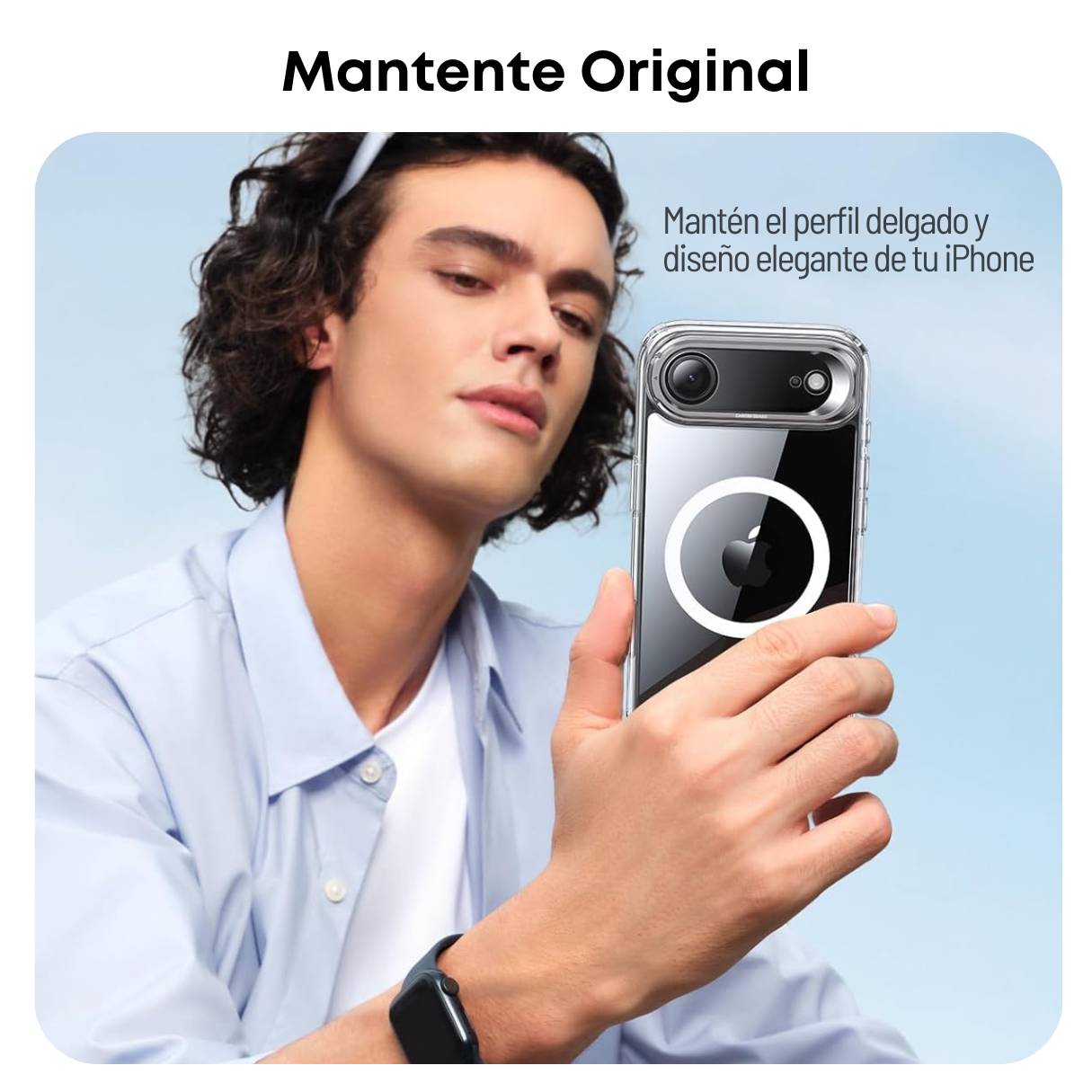 Diseñada exclusivamente para el iPhone 17 Air, esta funda combina funcionalidad y resistencia en un diseño elegante. Su soporte ajustable rodea la cámara, ofreciendo ángulos de visión de hasta 85° y permaneciendo oculto cuando no se usa. Incorpora un potente anillo magnético de 0.05 oz que permite una carga inalámbrica más rápida y una conexión estable con cualquier accesorio MagSafe. Las esquinas Air Guard absorben los impactos y garantizan protección total contra caídas. Fabricada en aleación de zinc premium, su bisagra está probada para más de 3000 usos sin perder firmeza.