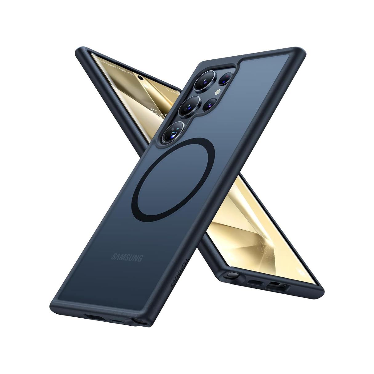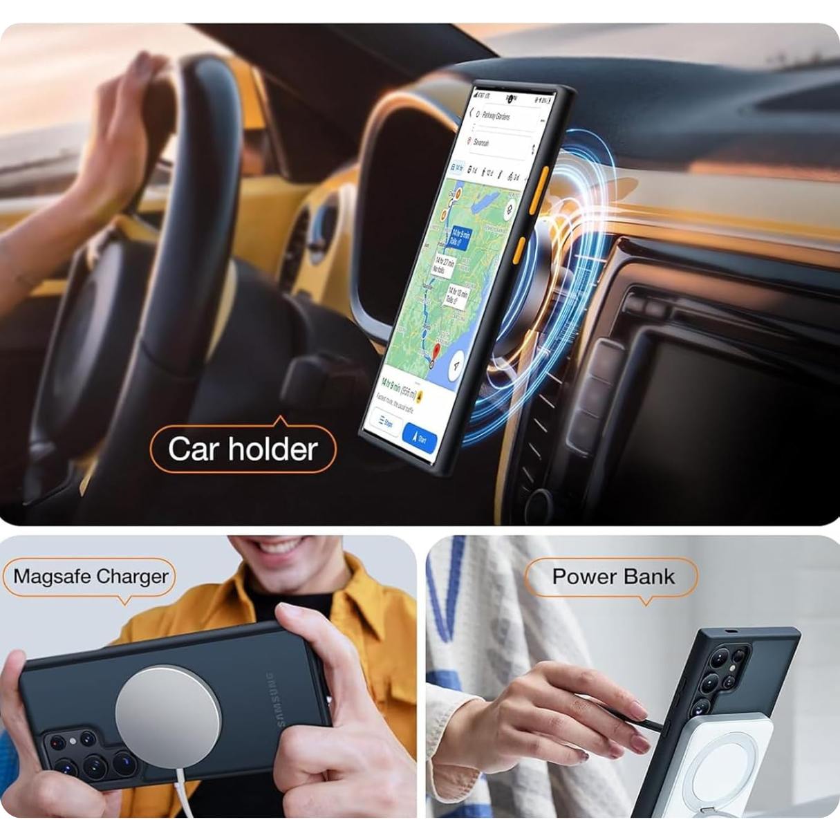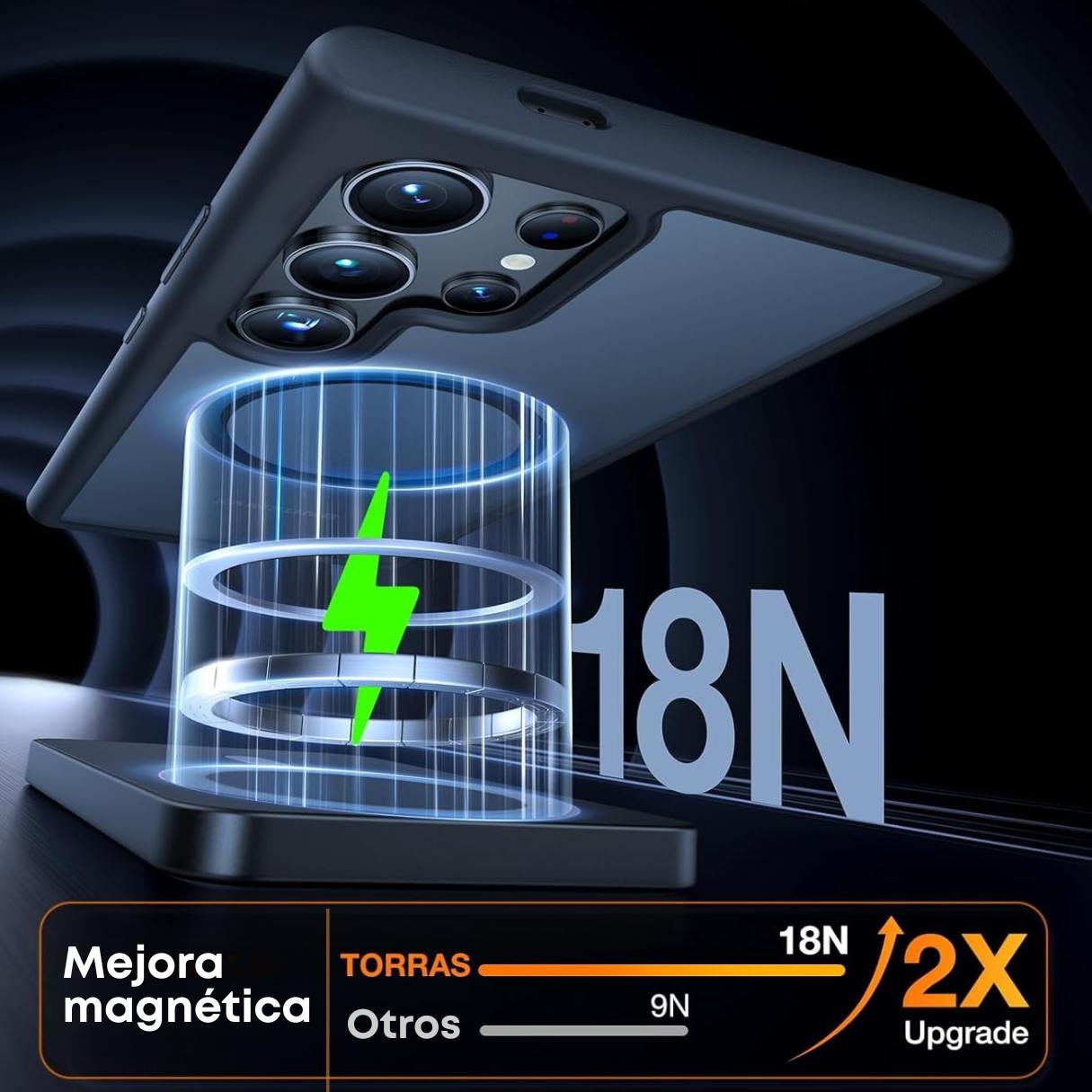 Torras Funda MagSafe para Samsung Galaxy S24 Ultra a prueba de golpes grado militar, delgada, semitransparente, negra