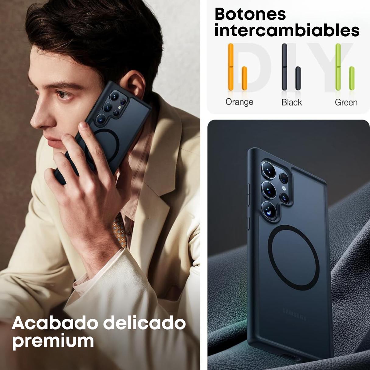 Esta funda para el modelo S24 Ultra con MagSafe está equipada con botones desmontables, por lo que ofrece una experiencia de respuesta táctil más sensible y obvia al presionar.
