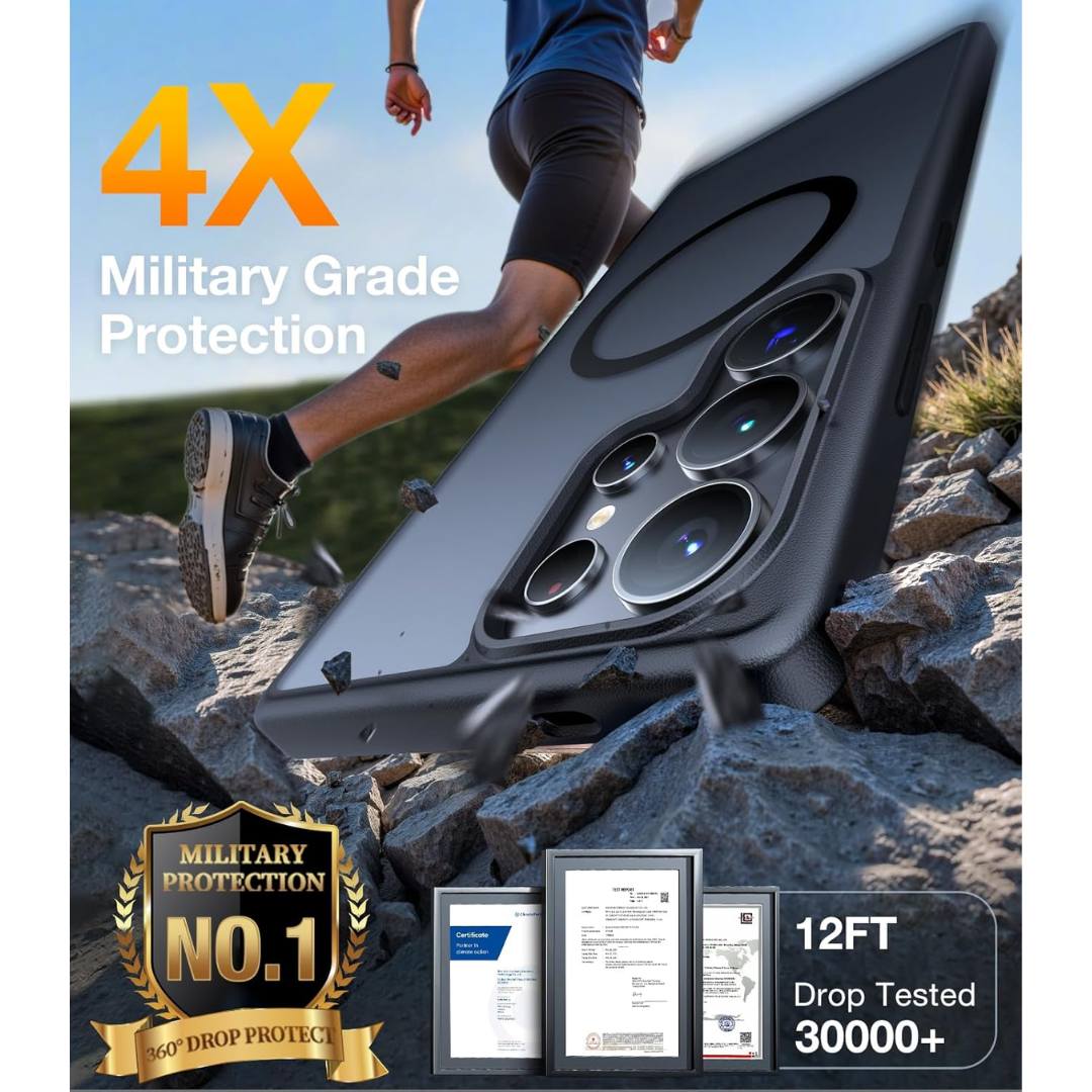 Torras Funda MagSafe para Samsung Galaxy S25 Ultra a prueba de golpes grado militar, delgada, semitransparente, negra