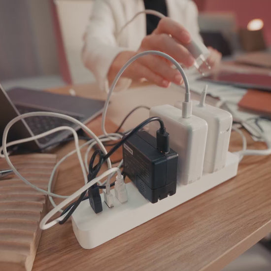 Ofrece una potencia total máxima de 65W, 60 W a través del cable USB-C retráctil incorporado + puerto USB-C de 20 W. Carga el MacBook Air 2022 al 60% en 40 minutos, Galaxy S25 al 50% en 18 minutos.