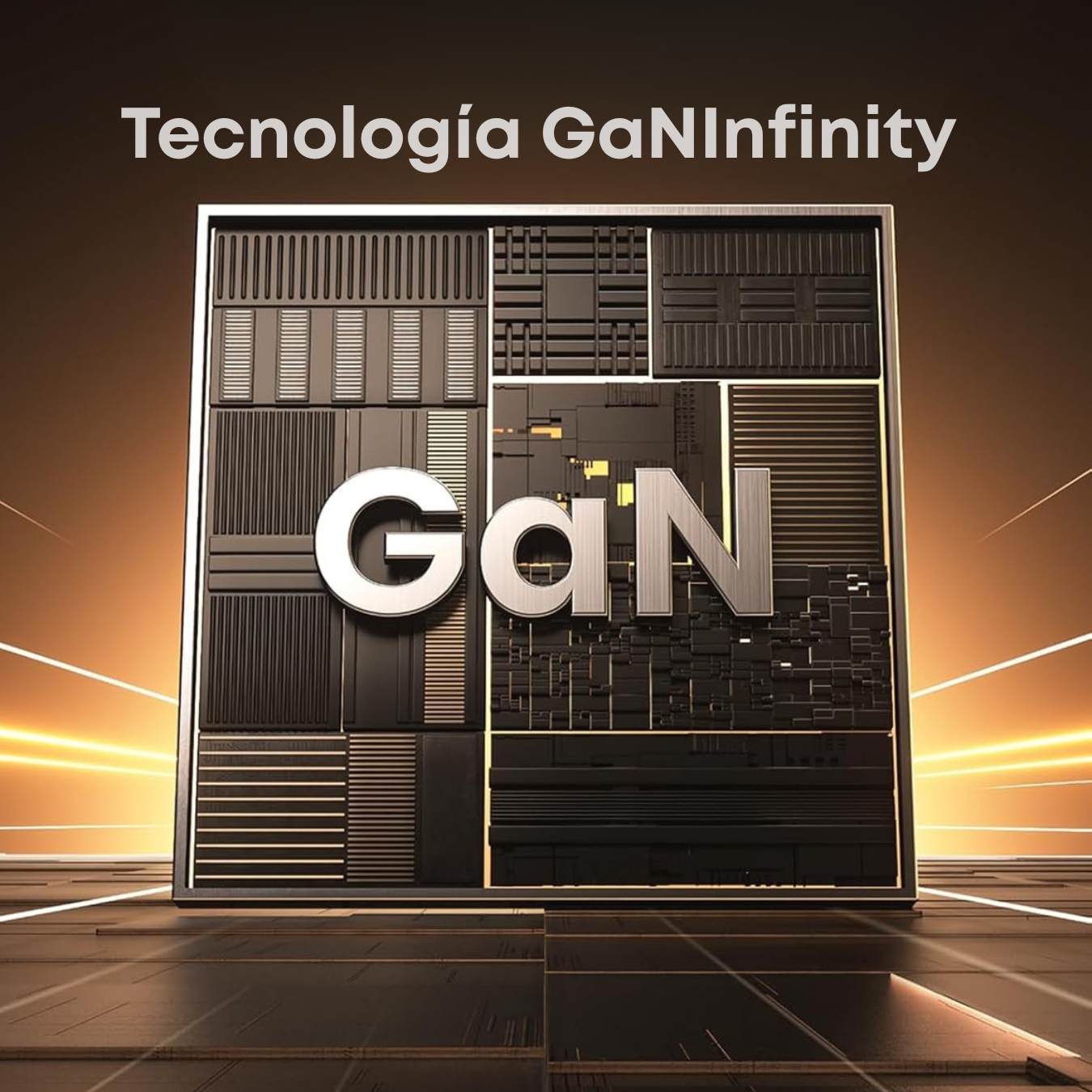 Fabricado con Tecnología GaN, siendo un cargador compacto y más eficiente que otros